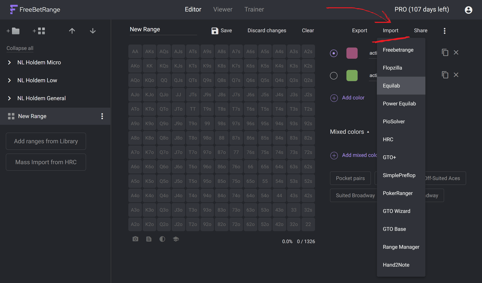 Importar rangos desde Flopzilla, Equilab, Piosolver, etc.