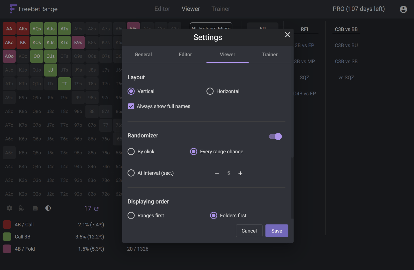 - El Viewer perfecto para ver todos tus rangos en forma de rango preflop dinámico. ¡Mucho más cómodo que PDF o capturas de pantalla!