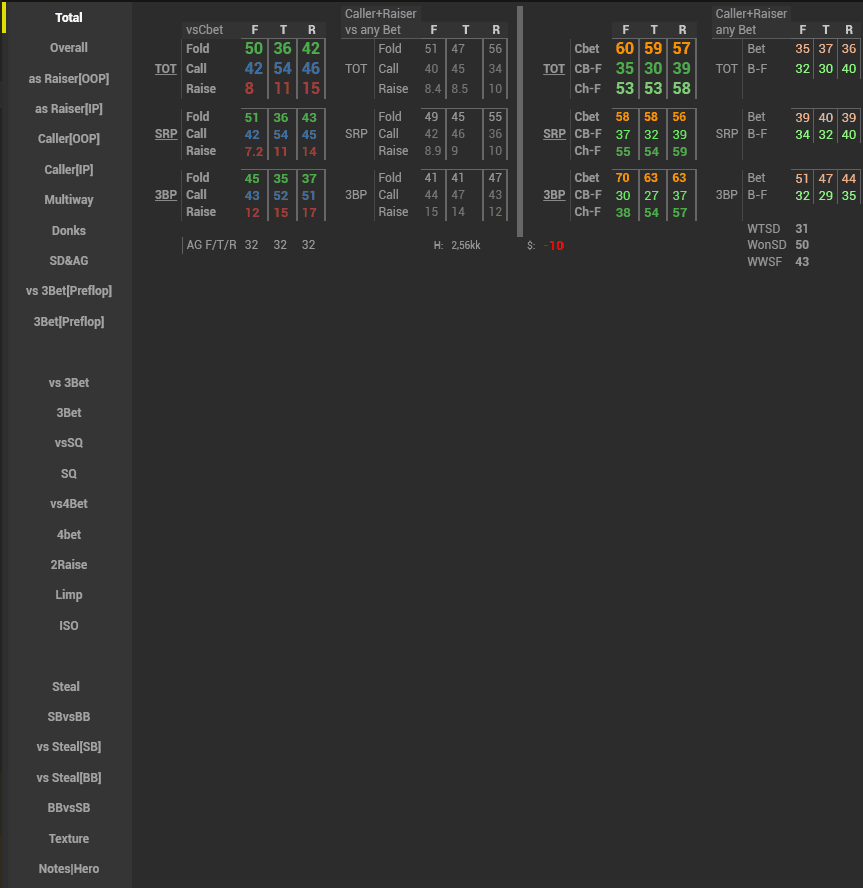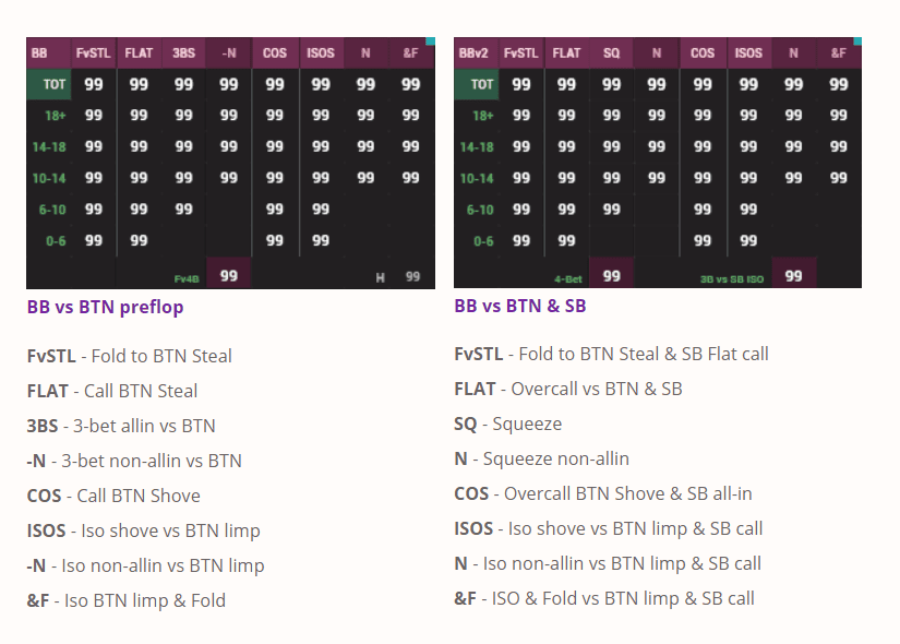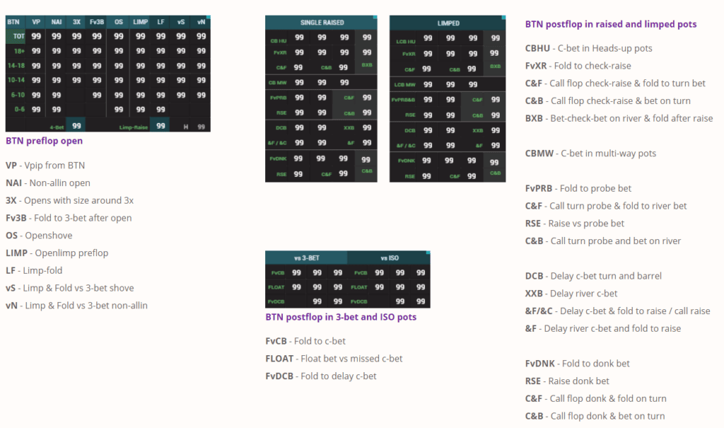 In this set, we have reflected most of the preflop GTO and deviations from it in opponents’ stats. The focus is on the main leaks of the field. The pack is suitable both for the game and for analysis outside the tables.