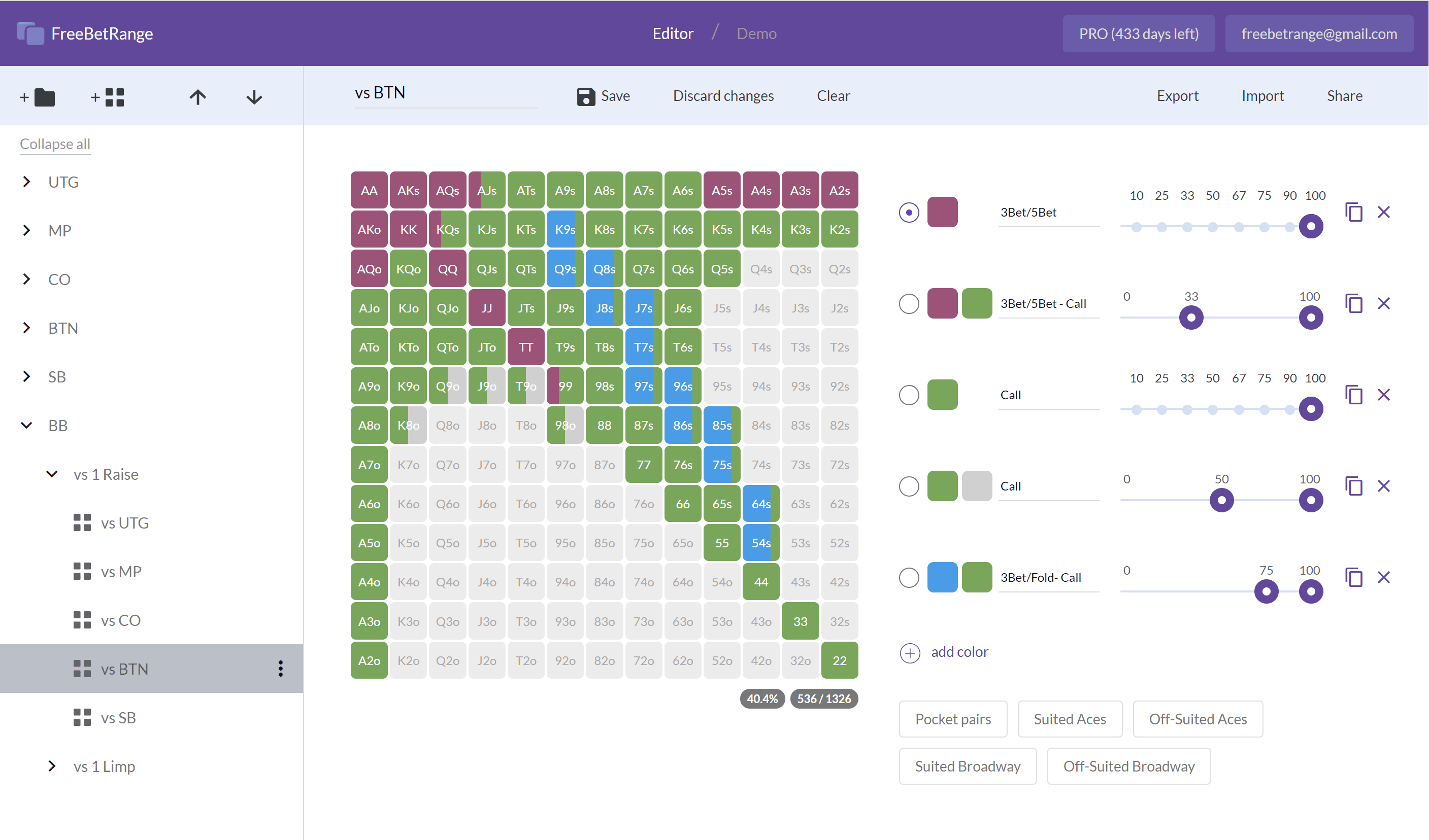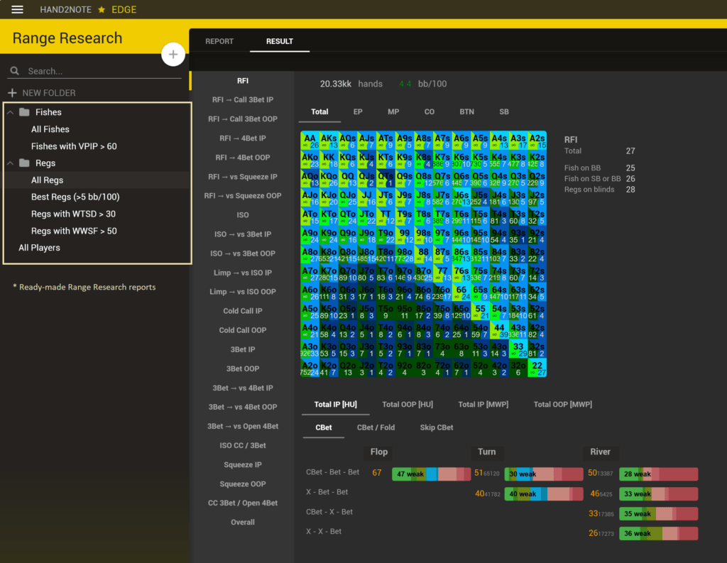 - Build ranges using intuitive Editor (or use ready-made library, or import from solver)