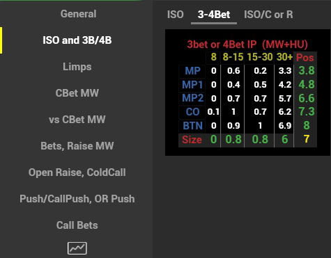 Playing becomes easy when besides 3bet stats we also have a general 4bet range. We don’t risk getting a 4bet and we begin 3betting wider with hands that dominate frequent calls. And vice versa.
