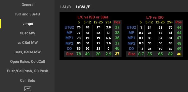 7. On the lower limits, awkward distribution of RFI by position. There are two types of BU stealers: overfold to 3bet or nearly no-fold to 3bet.
