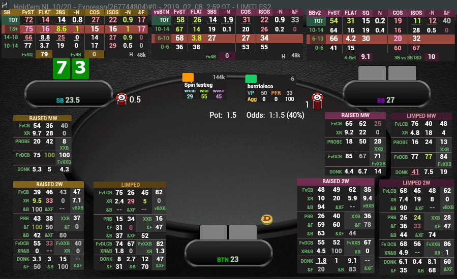 VENOM is a package developed in consultation with more than ten NL100+ regulars over 6 months. After the first release, it was redesigned by over 70% for an even better experience – popups have received new convenient tabs and lines. You can use Venom not only at the tables, but also to analyse your game or your opponents as you have more than 5000 stats at your disposal.