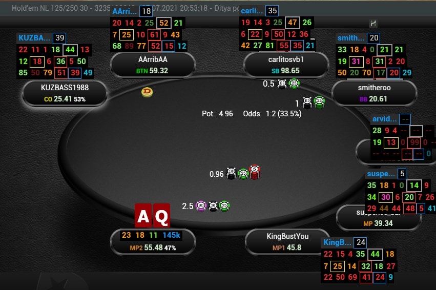 The stats are marked in 3 colors: orange is average reg, red is tight and green is more aggressive.