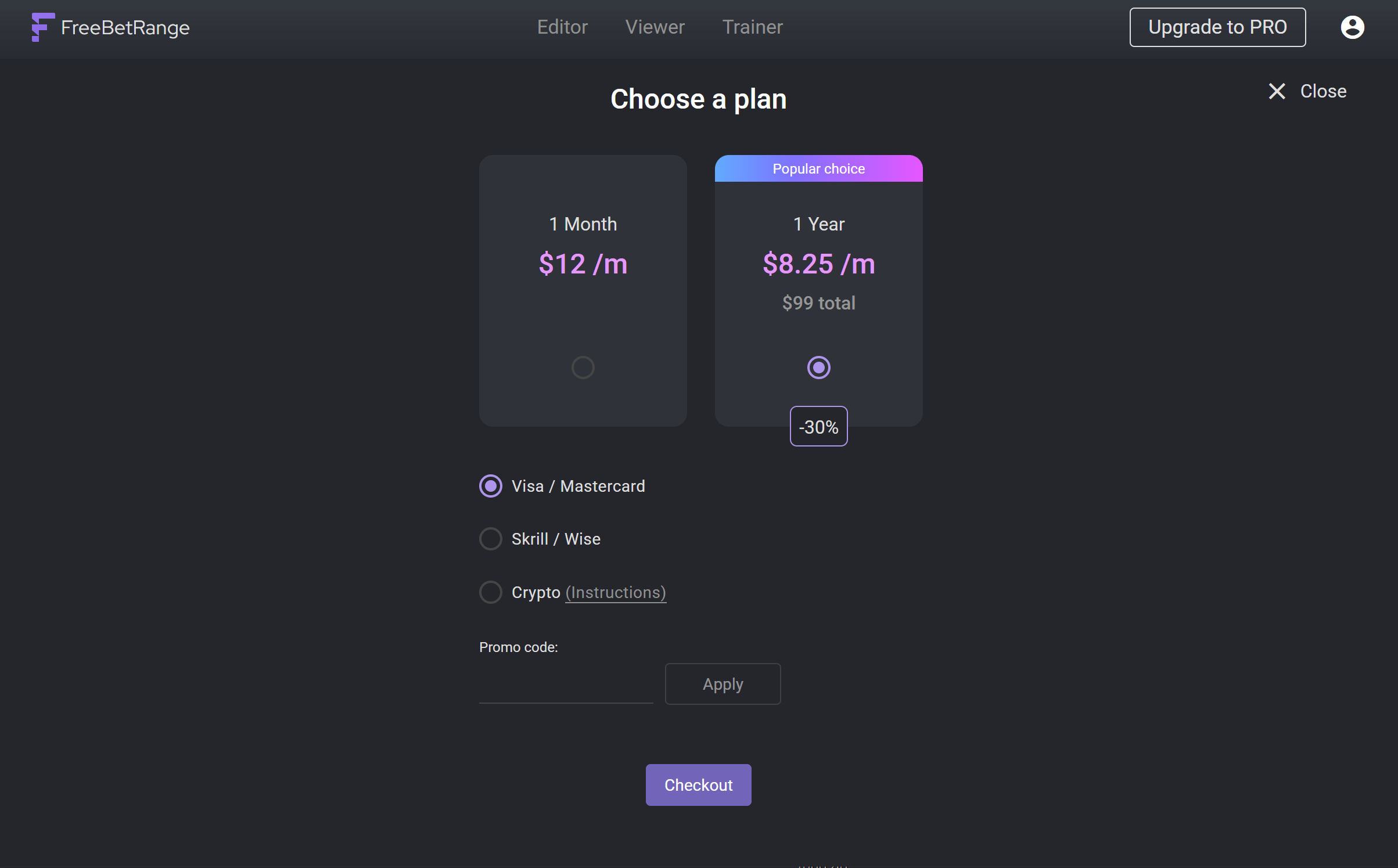 Freebetrange ha una versione totalmente gratuita e anche una versione PRO con funzionalità estese. La PRO parte da $8.25 al mese con un piano annuale.