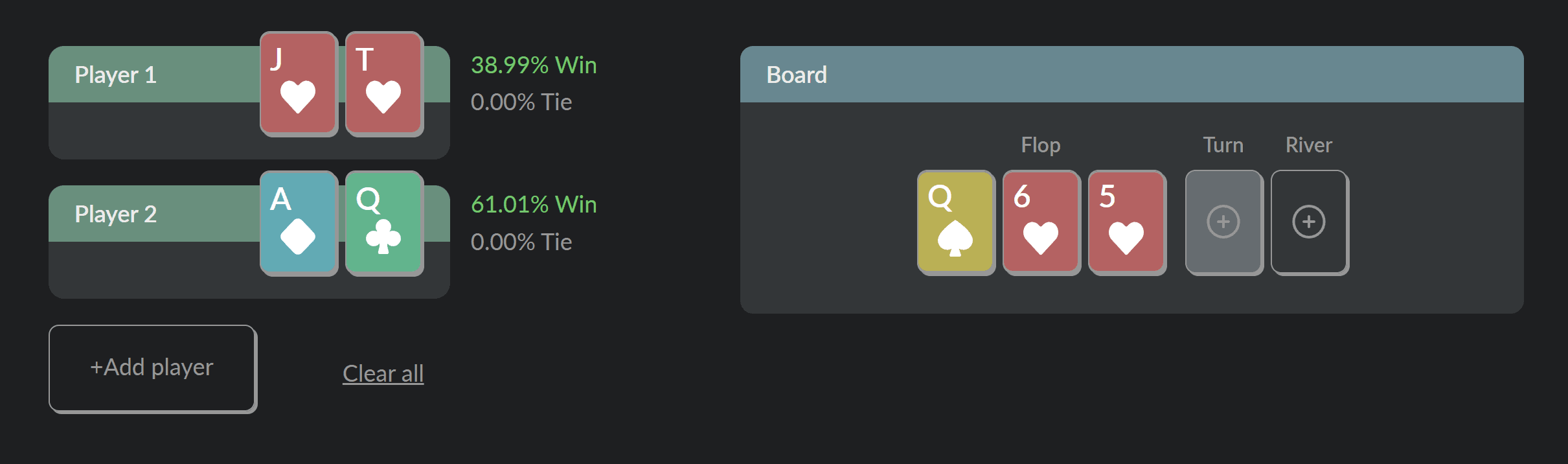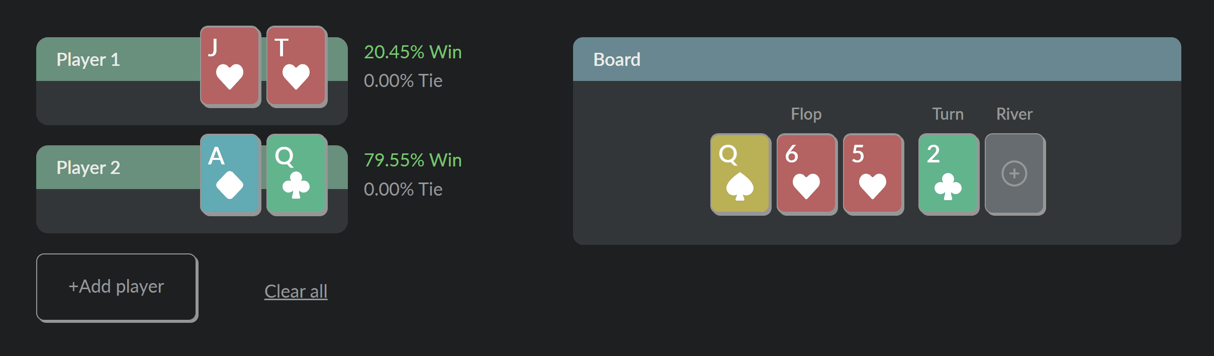 Your equity just dropped by 2x. Check out similar scenarios with Poker Odds Calculator.