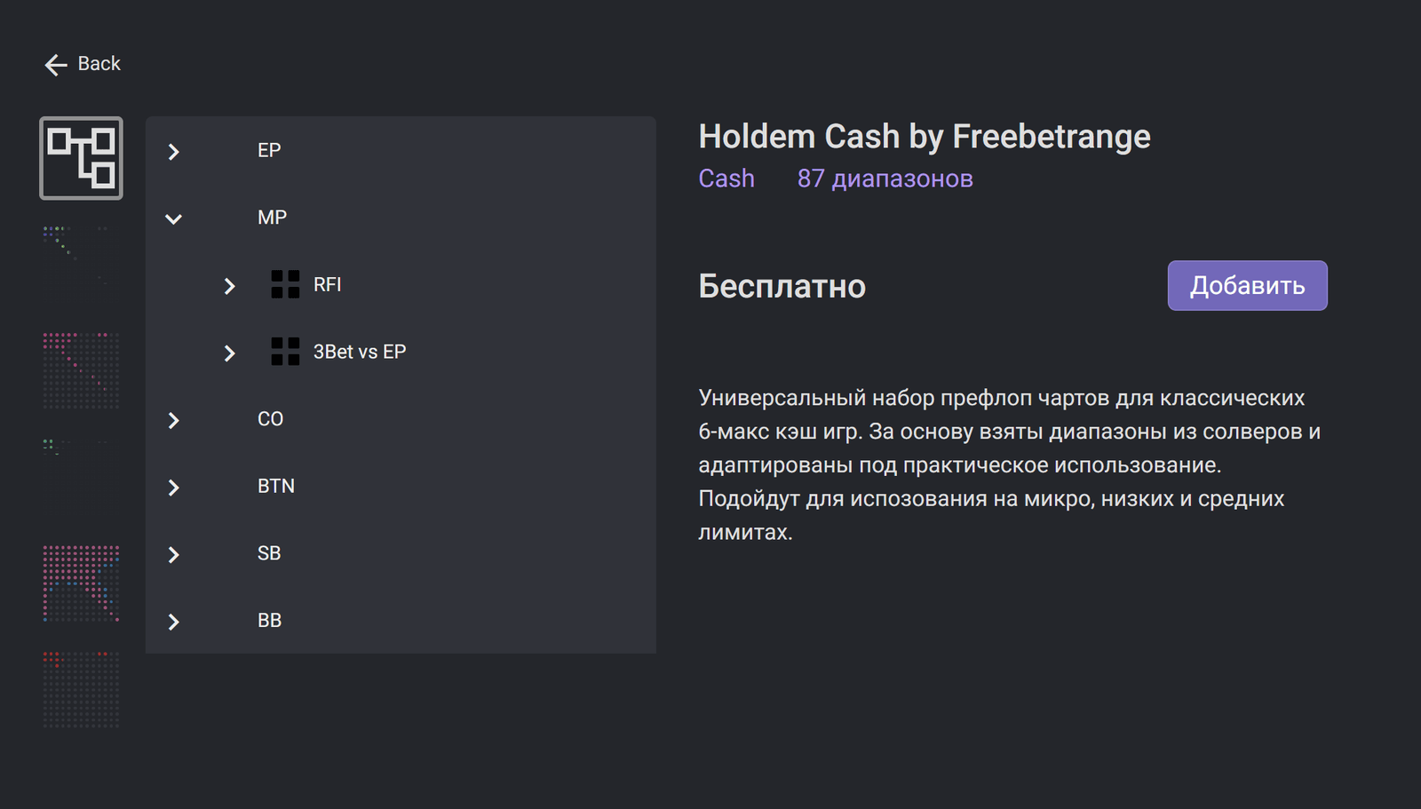 В Freebetrange есть все, что вам нужно для отработки префлопа: