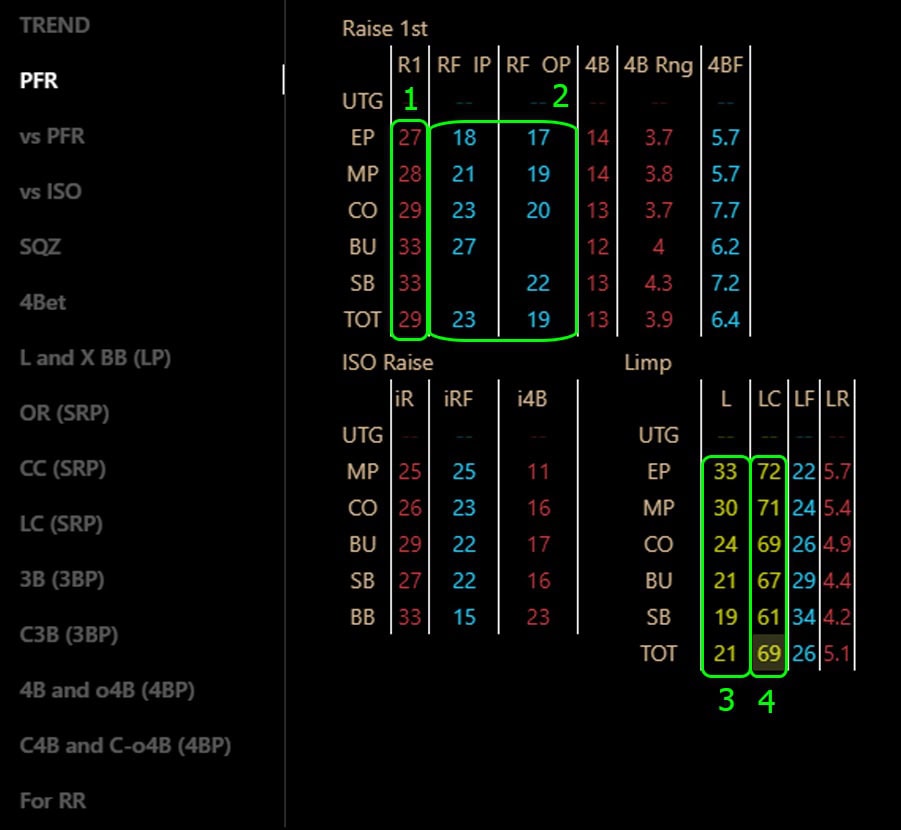 They also show a tendency for wide limping (3) and limp-calling after an isolation raise from an opponent (4).