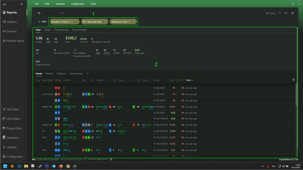 The tool “Reports” in Hand2Note will help us see our game results against different fish positions.