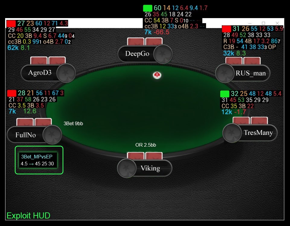 “Hide HUD if hero folded” feature enabled, the hero is a player with the nickname “Viking”.