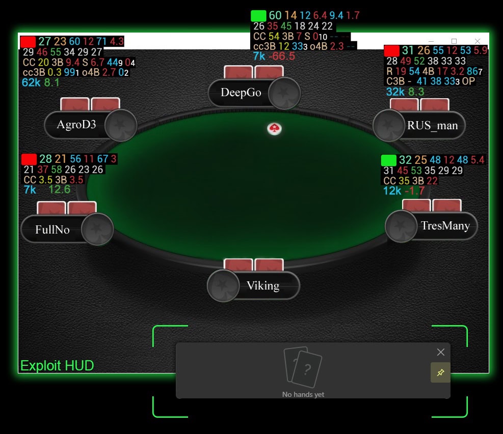• “Hide HUD if no hero at the table” – when this function is enabled, the HUD windows on players will not be shown until the player sits at the table;