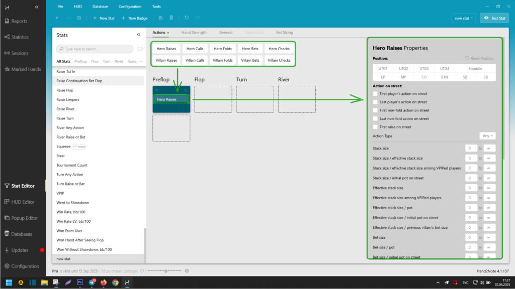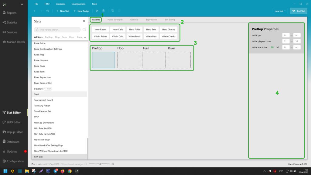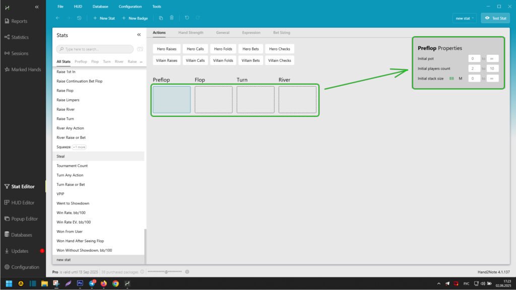 “Actions” Tab in the Hand2Note Stat Editor
