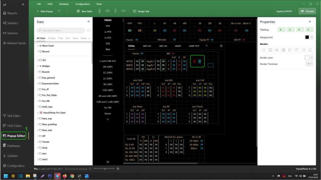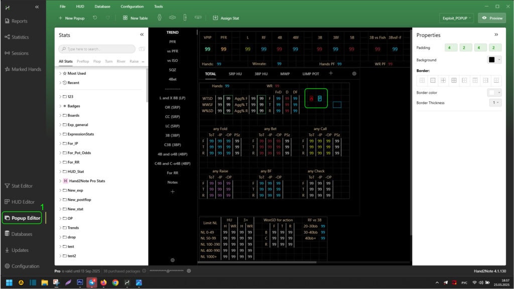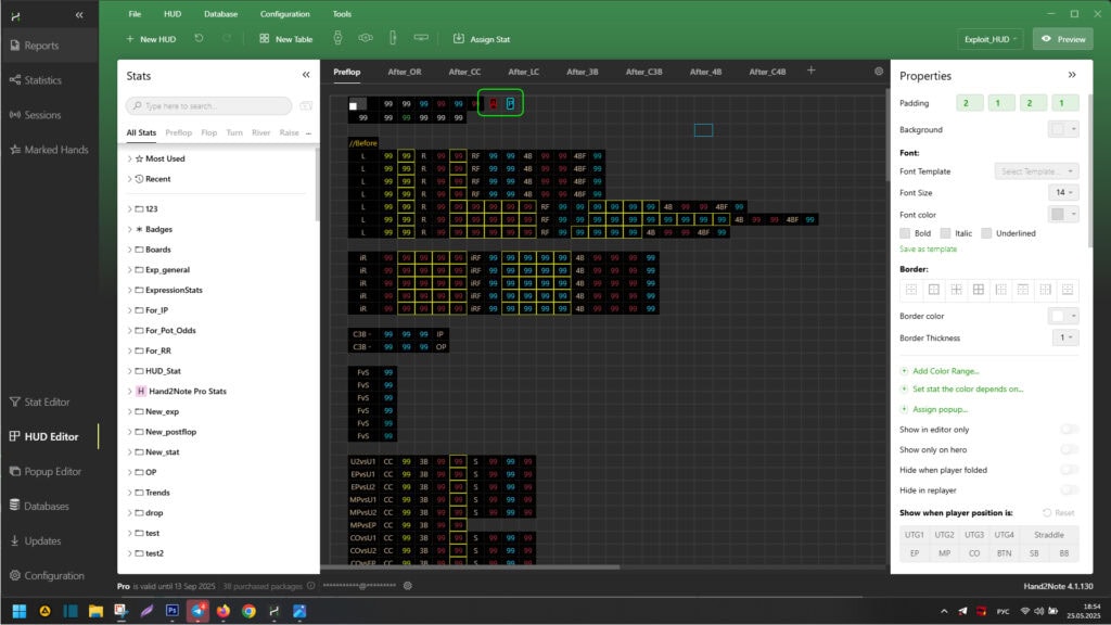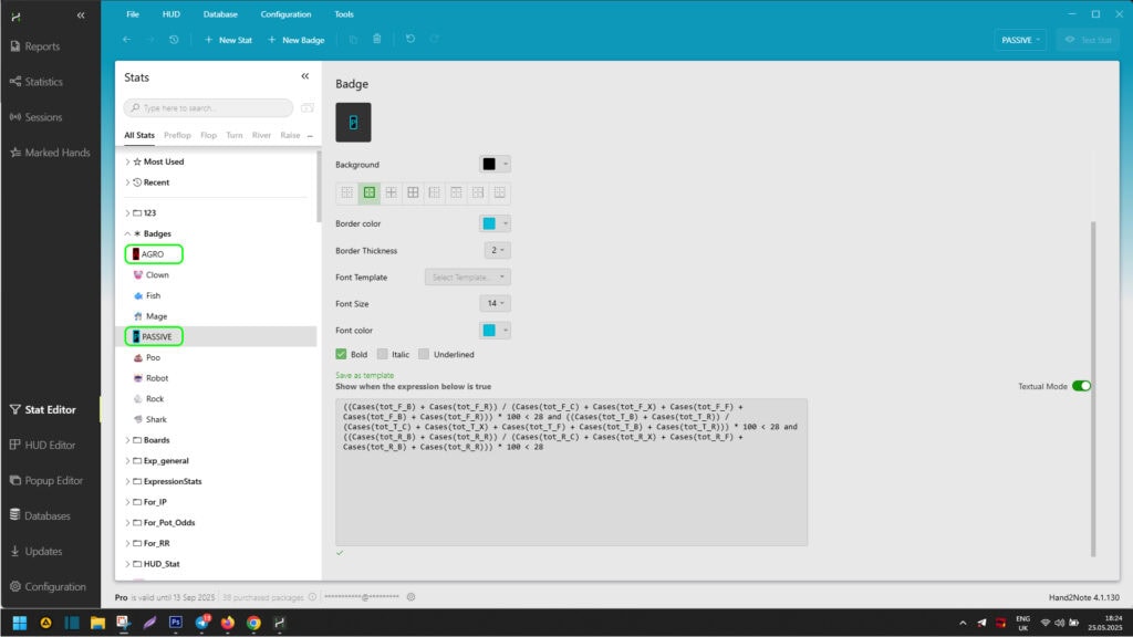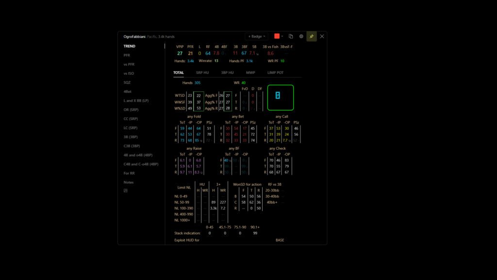 Now we need to correctly create a formula for “Textual Mode” in Hand2Note. For analysis, we will use the “EXPLOIT HUD BASE” statistics package. The necessary stats have the following formulas: