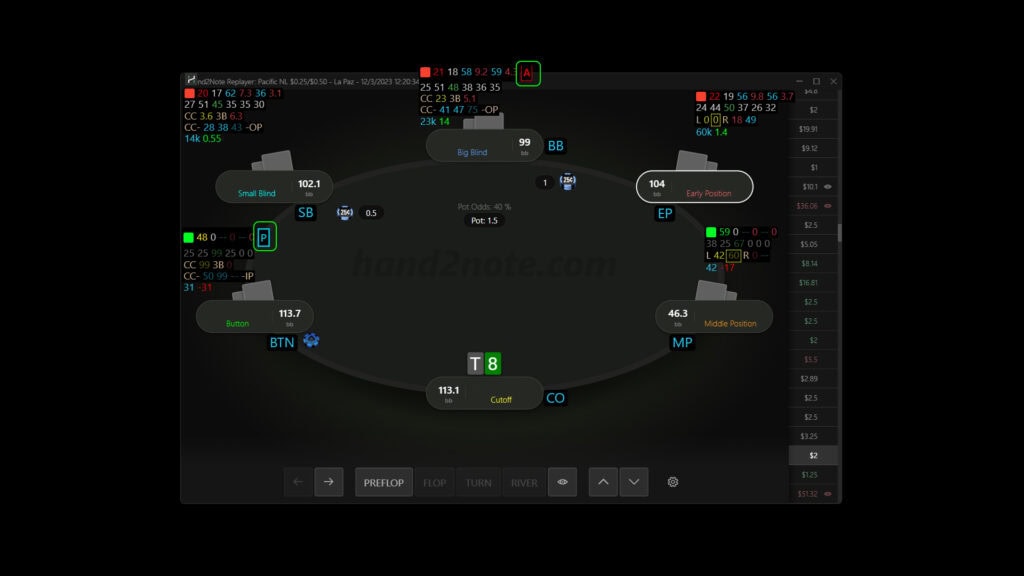 The final result of the badges in the HUD through the Hand2Note replayer looks like this: