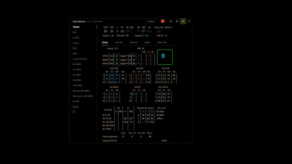 You can create badges for any condition — from 3bet-fold frequency to complex stats like aggression or overfold tendencies.