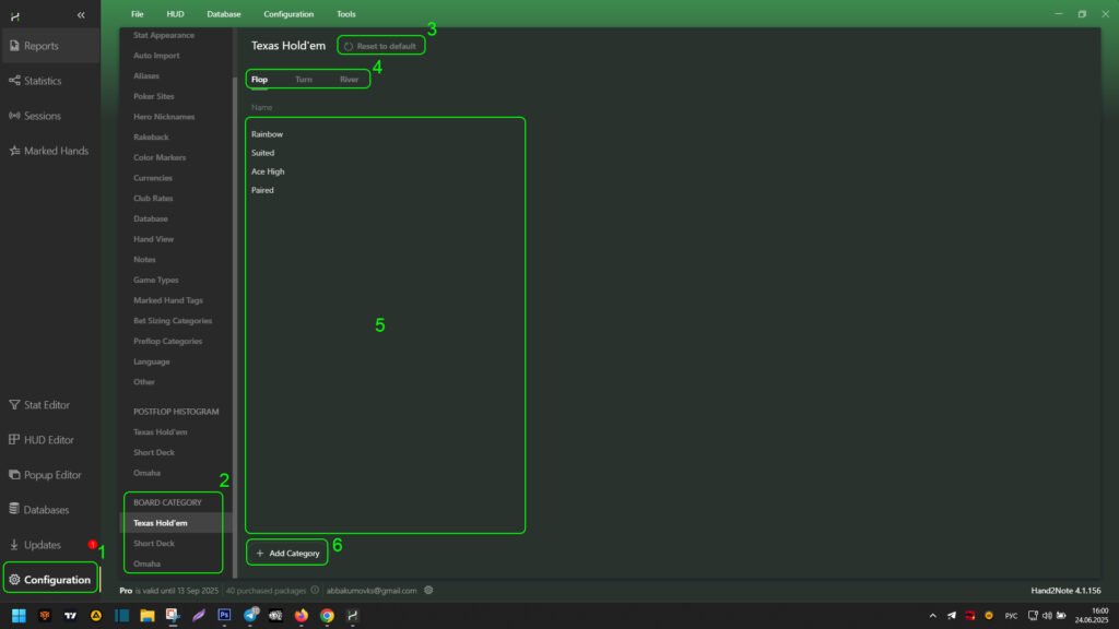 Setting up board categories in Hand2Note allows for deeper game analysis. Creating custom categories helps account for the specific textures of flops, turns, and rivers, making the evaluation of opponents’ strategies more precise.