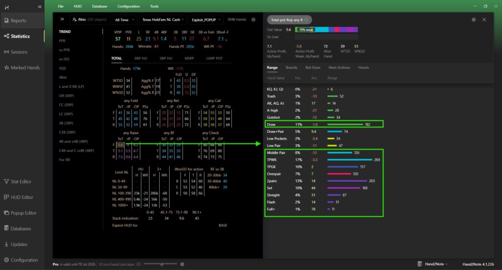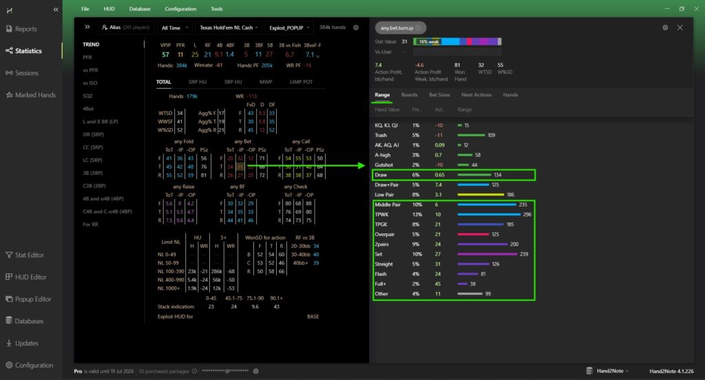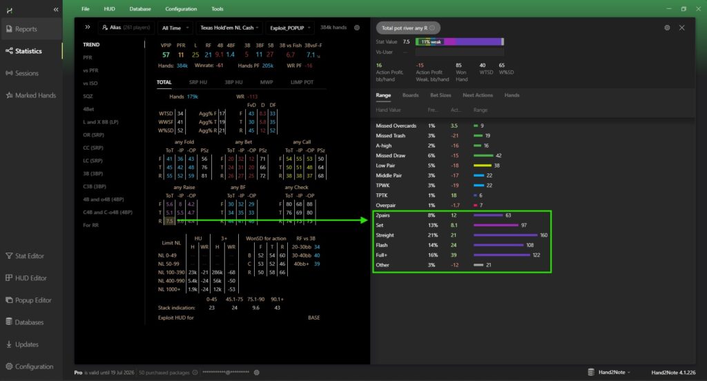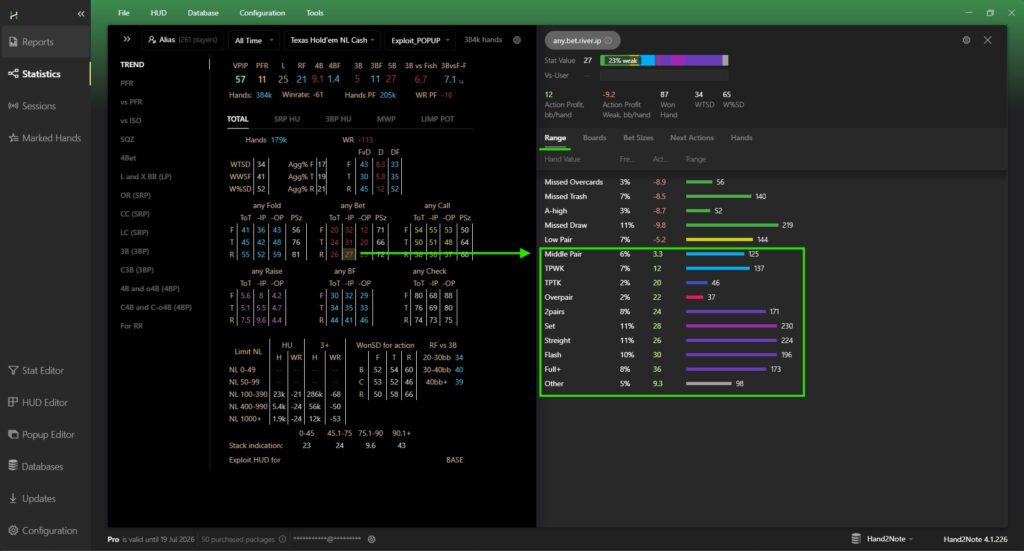 他们的攻击本身并不危险。危险在于不愿相信它。使用Hand2Note不仅仅是为了收集统计数据,而是为了深入研究行为模式,帮助将对“意外”攻击的亏损跟注转变为自信的弃牌,这对图表产生积极影响。
